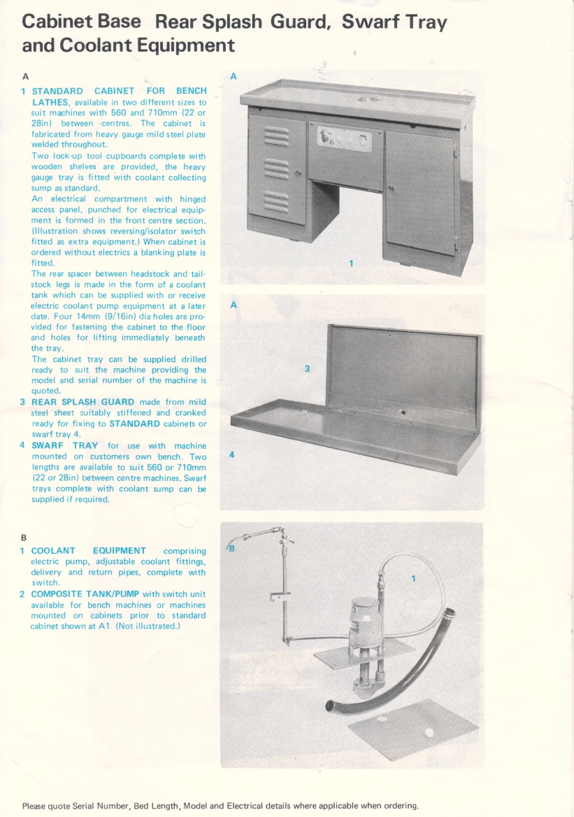 Boxford ME10 Lathe accessories and additional equipment as at 1982