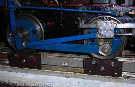 May 23rd 2007 -- Since the loco was first run way back the rear suspension had been lowered into a fixed position. This gave the appearance of the front of the loco being higher than the rear. The rear suspension has now been released and allowed to float and a rolling road made so that checks can be made as to the timing of the valve gear.