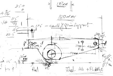 Whilst the idea came from a magazine the pony is to my own design as I did not wish to cut the main frames. Opposite is the original pencil sketch of idea. The frames have been laser cut and the construction is well in hand. |