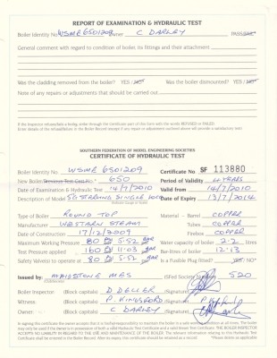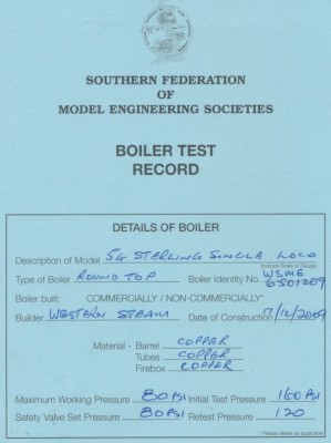 I am pleased to say that all the necessary documentation and markings are on the boiler I had made. A completed boiler is not the end of the story as one then has to make up all the plugs to go in the holes so that the club can carry out an inspection and pressure test. Making up the plugs took a couple of evenings but then I noticed several holes without threads and am wondering how I will deal with filling them prior to the tests ...