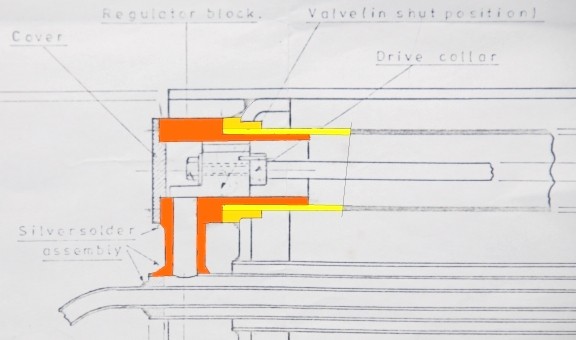 Discussing the regulator with a friend the use of a Banjo to link the out let to the super heaters were considered. However the banjo idea can't be used if the regulator is to remain in the smokebox as in the drawing below.