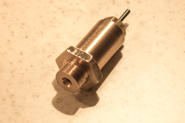 23rd December 2017 Today I made up the safety valve, in Phosphor Bronze (PB), to the dimensions on the plan and used a 1/4" Stainless ball as that is the size I have used previously. It tested out on air well. The stem at the top can be cut shorter if required. I had previously made one from Brass but even using the same dimension is did not seal well and I put this down to the fact that PB is softer that Brass and thus the ball makes it own seat in the PB when the spring bounces back to the closed position after releasing pressure. The Safety Valve cover as shown above fits over the Safety valve nicely |