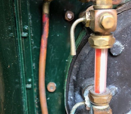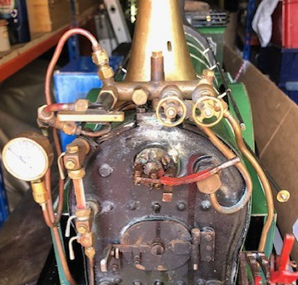 August 2025 It is a requirement of MMES that ones locomotive has a Boiler Steam test, repeated every 4 years, part of which is a repeated Hydraulic Test. This is a hydraulic test, this time with all of the fittings on essentially this is carried out when the loco is ready to go, but with safety valves plugged. On my loco the plug for the safety value has a 1/4” x 40 male thread is required to attach to the test pump. The boiler is pumped up to 1.5x working pressure, assuming it reads to a high enough pressure, ideally with the pressure gauge still attached, with my boiler the pressure required to be held for a period of time is 80 x 1.5 = 120 psi. Once the hydrostatic test has been passed a steam accumulation test is undertaken to ensure the safety valves lift at the correct pressure, at the RED lin on the pressure gauge, that injector(s) and water pump(s) can maintain the minimum level of water in the boiler.. I arranged a boiler test on my Stirling single locomotive for the 27th of August 2025, I would normally have tried to test out things to find any obvious leaks, but it was suggested I just take the loco along to the club and the boiler tester will do what he can. The time and date arrived and the test commenced with checking the pressure gauge to comply with the necessary red line at the working pressure, the test was passed successfully. However, the hydraulic test did not go well and no pressure could be raised on the test pressure gauge due to leaks, particularly on the regulator and more in the smoke box and also down the rear of the boiler So I now have the loco back home and preparing to find where the leak is come from and take photographs and then cure the leak problems The first thing I will do is to remove the cab so that I have easy access to all of the fittings on the rear of the boiler. |
