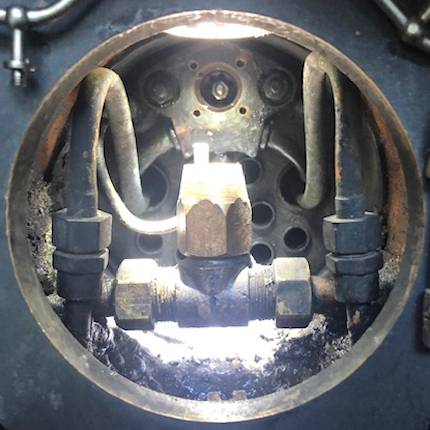 | 31st August 2025 My new supply of V-tech high temp silicone gasket maker I am ready to tomorrow open up the smoke box end of the regulator as shown in the photo. You can see how sooty it look so all of that will need to be cleaned up before removal and then refitting. |