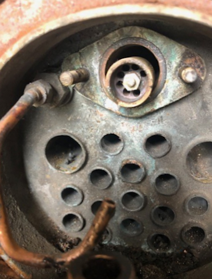 | 31st March 2026 The new bolts do fit and grab the thread but the bolt needs to be shortened. Today I was also able to make the gasket to go between this headed piece and the boiler. |