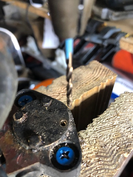 | 22 March 2026 Finally made to drilling suport so that I can try to drill a new tapping hole where the brass bolt snapped off. |