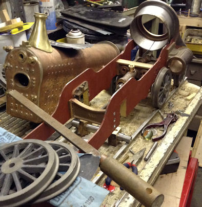 Here the frames are standing with stretchers etc in place. The next job was to rivet into place the horn blocks. |