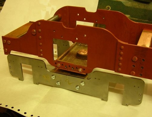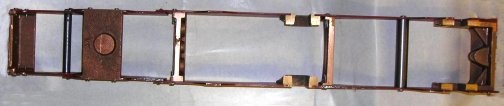 | Here the fames for the sides of the bogie have been fitted to the bogie stretcher and just placed for the photo under the main chassis. | ![]() |