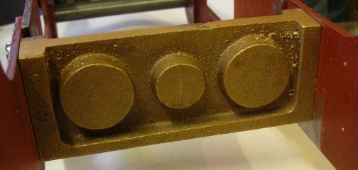 10th Jan 2008 Today saw the real re-commencement of the engineering with the machining of the front drag beam. I am working in mm so everything has to be converted as the drawing is in inches. Then followed the Centre Frame stretcher, as shown in picture on right, and the rear drag beam. The trailing horn blocks castings were tidied up ready to be cut in half and fixed to the frames.