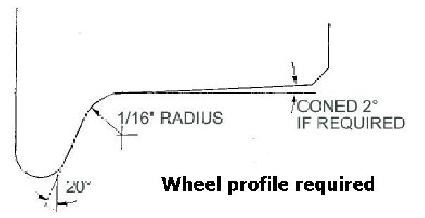 Have ground up a tool to put the wheel profile on the tread in accordance with the local society requirements which is indicated in the adjacent picture. The dimensions of the profile will need to be carefully checked as I do not want to go wrong after so much has been done to the wheel blanks so far - about 1 hour's work on each including the 30 minutes to cut it from the stock steel!