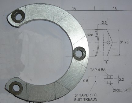 Here the wheel has been had the front angle also applied and the wheel is now complete - EXCEPT for tapping the securing bolt threads on the reverse side. |