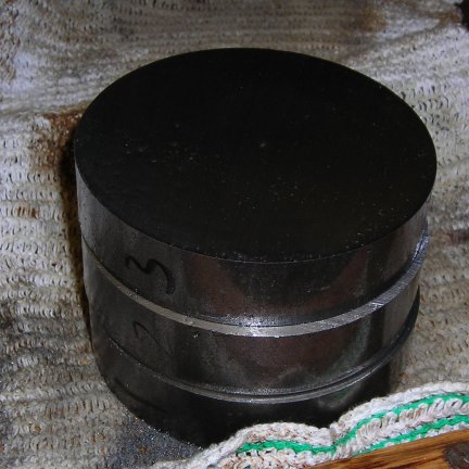 The first wheel blank is cut and is the right size for the next stage with near parallel sides. |