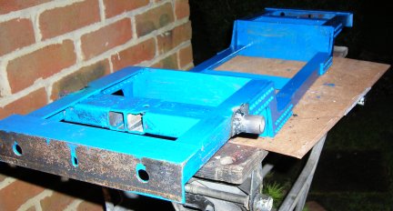 No much to show for a long day as the remaining riveting took all morning and the preparation for painting took a goods while but it was nice to see the first truck with the first coat of paint .. Must now make a list as to the last pieces of steel needed to make up the second set of bogies and foot rests ... |
