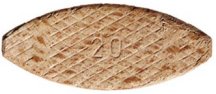 An oval shaped wooden biscuit is covered with glue, placed in the slot, and