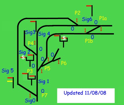 Installed the pneumatic operation for point P1b and also updated S6 and positioned it at the exit from the siding, just before P1b but indicates the same as if in the position between P1a and P2 as it is operated by pneumatically operated by P1a/P1b. Although this is incorrect when using the distant signal at Signal 5 as far as safe driving goes if the signal S6 is clear then it is ok to move over the points P1A. The two signals adjacent to the Signal box are now operational. |