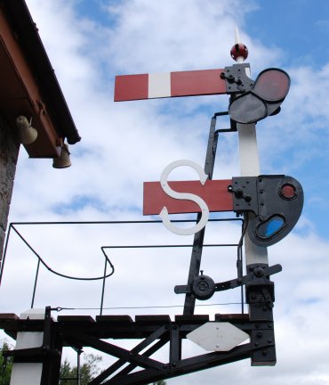 | I am also using an "S" signal which I first saw at Buckfastleigh South Devon Railway to indicate a siding and it was quite common in the early years for junction signals to have 'indexed' arms to make it quite clear to the driver that they were going into siding. |