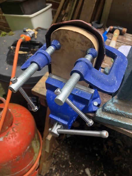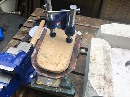 completed and ready to be check at the club before drilling. The top looks wavy but that is what happens as one forms the copper over a former. |