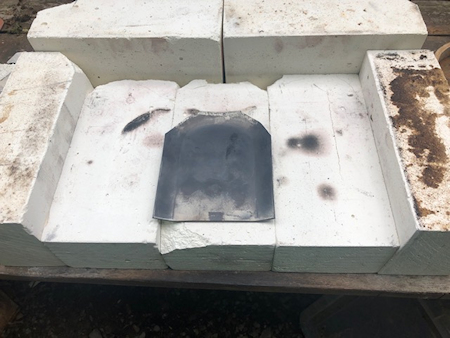 | 26th May 2025 More hammering to day. First I had to cut the MDF former. Then the Firebox had to be cut from the supplied piece so that is had a rounded top. rather than the flat rectangular blank. |