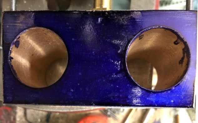 | 30 April Blue marking out fluid applied to cylinder casting. |