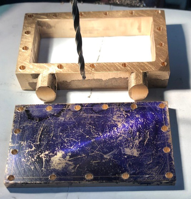 | 23rd April To ensure that the remaining holes were drilled correctly the two corner holes were tapped into the cylinder and the cover and steam chest drill out clearance size. Then the remaining hole were drill tapping size. |