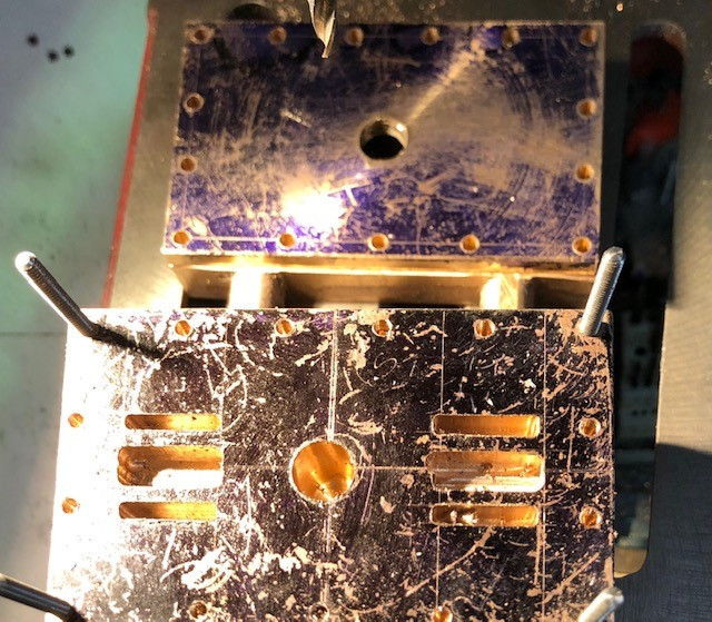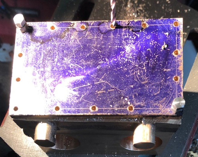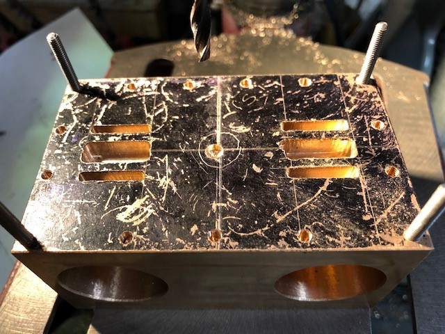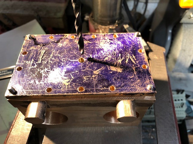 | 22nd April The new drills arrived as hoped for and they are very nice and drilled all the holes in the top of the steam chest in about 30 minutes. Nest will be the setting up to drill all the holes through the steam chest and into the cylinder block initially as tapping holes and the widen out in the steam chest and steam chest top to clearance holes. Then tape the cylinder holes 4BA !! |