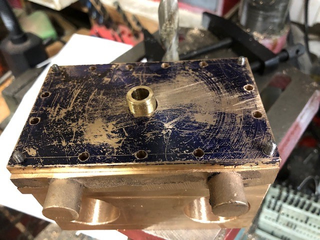 chest top above that. Now I have to decide how to mark out and hold the pieces to drill and tap as needed so that the part secure together and then decide how to drill the holes in the steam chest for the valve spindles. All sounds easy but needs thinking about !! Total time today just short of 2 hours !!! |